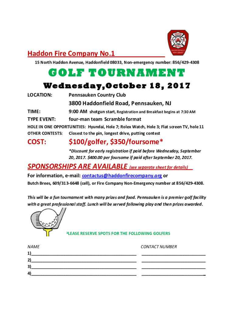 Had done Fire Company No.115 North Had done Avenue, Haddonfield 08033, Nonemergency number: 856/4294308GOLF TOURNAMENT Wednesday, October 18, 2017, LOCATION:Pennsauken Country Club3800 Haddonfield