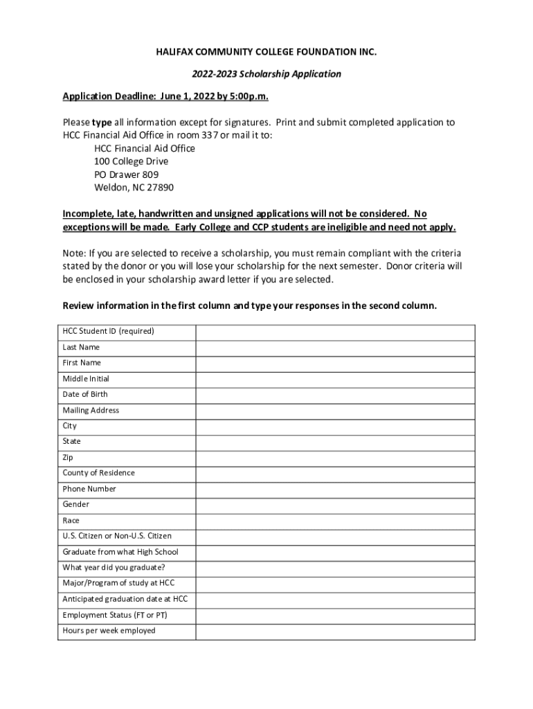 How to fill out the Halifax Community College Foundation Scholarship Application