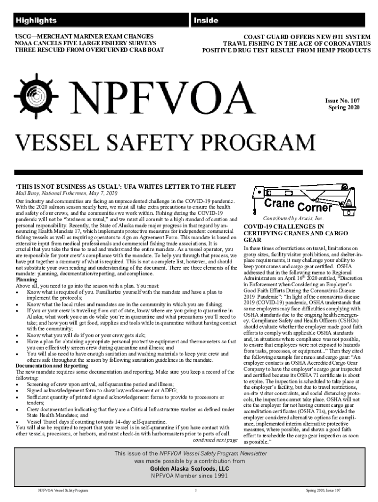 USCGMERCHANT MARINER EXAM CHANGES NOAA CANCELS FIVE LARGE FISHERY SURVEYS THREE RESCUED FROM OVERTURNED CRAB BROADCAST GUARD OFFERS NEW i911 SYSTEM TRAWL FISHING IN THE AGE OF CORONAVIRUS POSITIVE