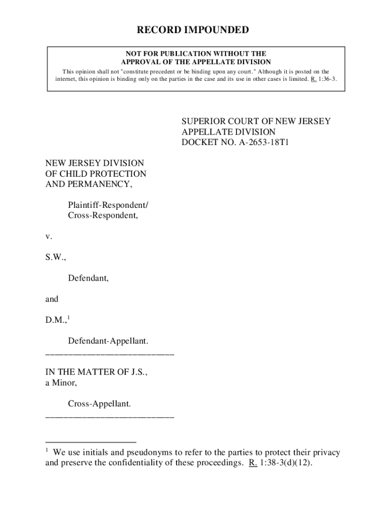 Get the free www.njcourts.govattorneysassetsA-2653-18T1 DCPP VS. S.W. AND D.M., IN THE MATTER OF ...