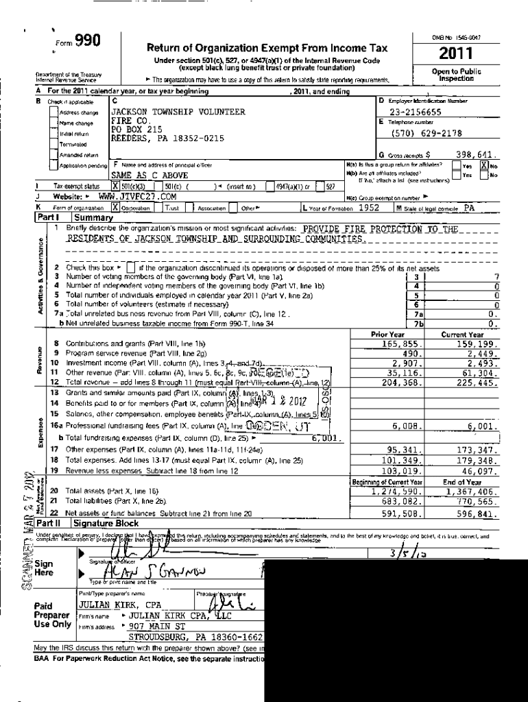 OMB No 15450047Form 990Return of Organization Exempt From Income Tax2011Under section 501 (c), 527, or 4947(axis) of the Internal Revenue Code (except black lung benefit trust or private foundation)