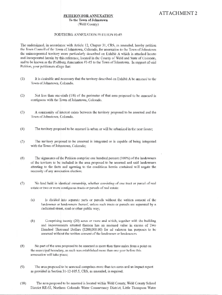 PETITION FOR ANNEXATION To the Town of Johnstown (Weld County)POSTURE ANNEXATION PETITION #l×5The undersigned, in accordance with Article 12, Chapter 31, CRS, as amended, hereby petition the Town