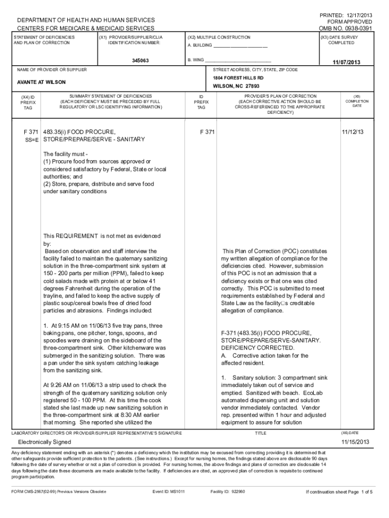 PRINTED: 12/17/2013 FORM APPROVEDDEPARTMENT OF HEALTH AND HUMAN SERVICES CENTERS FOR MEDICARE & MEDICAID SERVICES STATEMENT OF DEFICIENCIES AND PLAN OF CORRECTION(X1) PROVIDER/SUPPLIER/CIA IDENTIFICATION