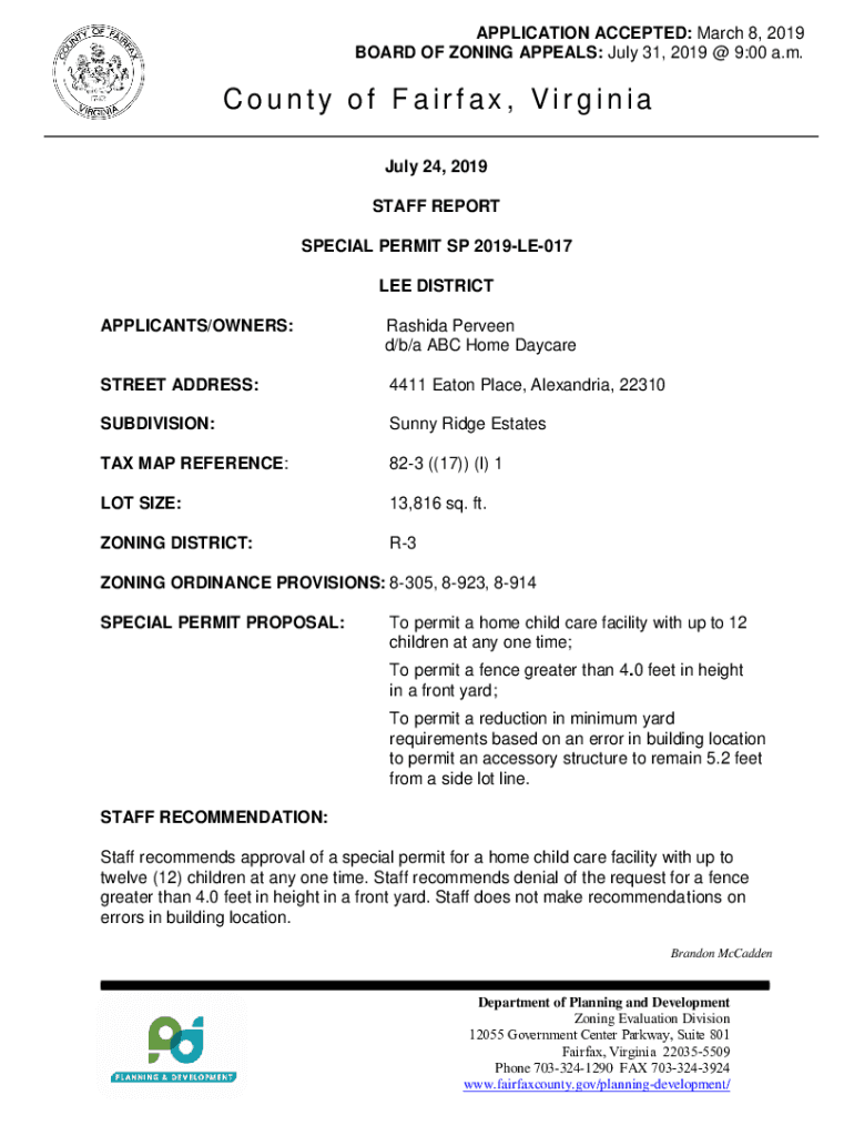 Get the free APPLICATION ACCEPTED: March 29, 2019 BOARD OF ZONING ... - ldsnet fairfaxcounty