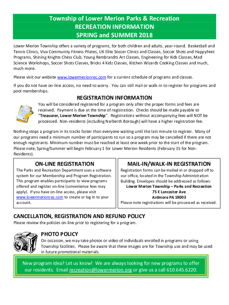 Get the free Parks and Recreation Department - Lower Merion Township ...