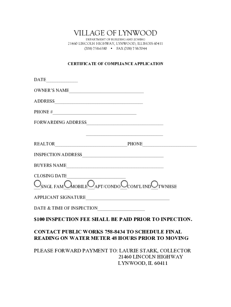 What is IL Certificate of Compliance Application - Village of Lynwood?