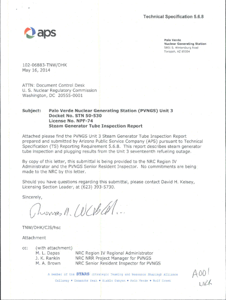 Technical Specification 5.6.80apsPalo Verde Nuclear Generating Station 5801 S. Winters burg Road Tooth, AZ 8535410206883TNW/HK May 16, 2014, ATTN: Document Control Desk U. S. Nuclear Regulatory Commission
