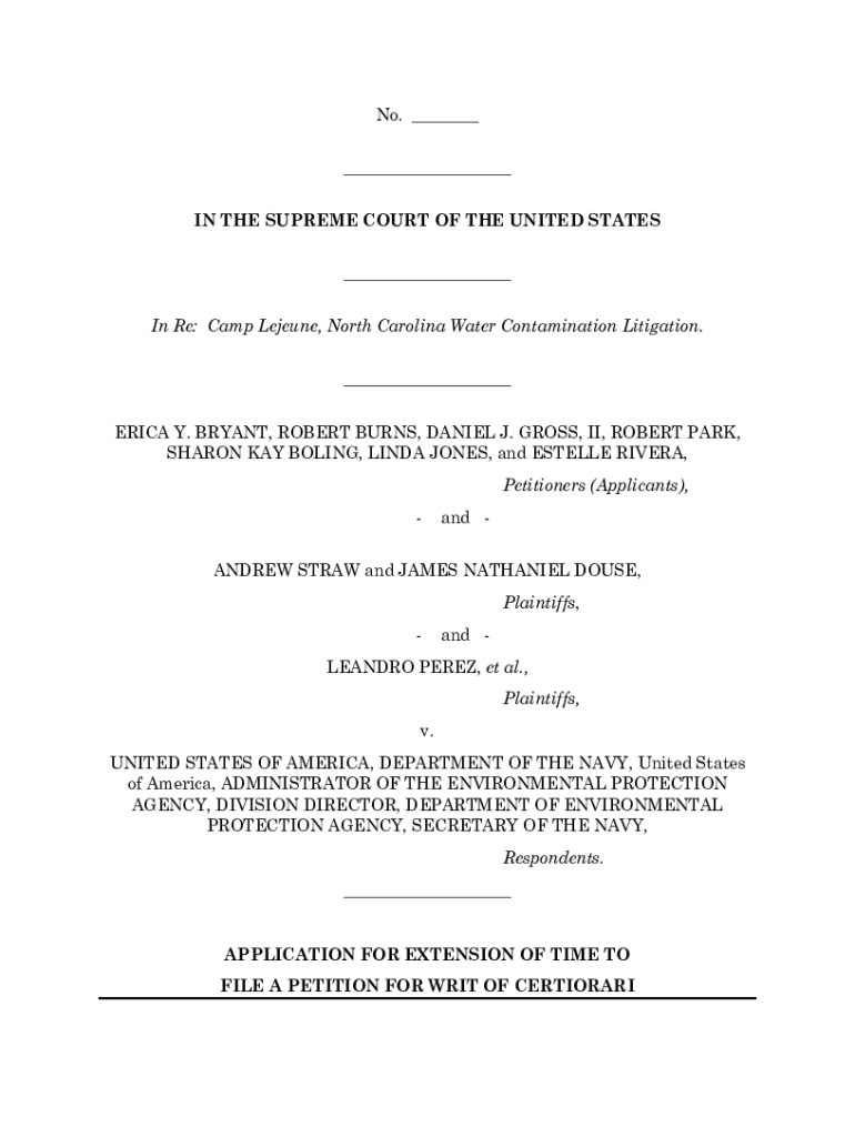 No. ___ ___ IN THE SUPREME COURT OF THE UNITED STATES ___ In Re: Camp Jejune, North Carolina Water Contamination Litigation. ___ ERICA Y. BRYANT, ROBERT BURNS, DANIEL J. GROSS, II, ROBERT PARK, SHARON