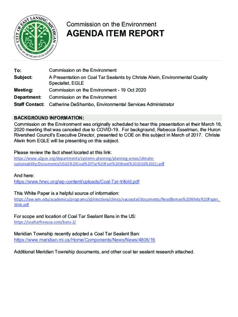 MI Commission on the Environment Agenda Item Report - City of East Lansing 2020-2026 free printable template