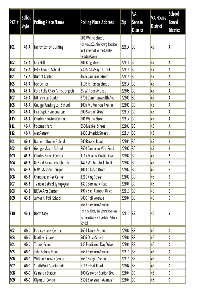 Ballot PCT# PollingPlaceName StylePollingPlaceAddressZipVA Senate DistrictSchool VA House Board District District901WytheStreet 10145ALadreySeniorBuildingForNov,2021thevotinglocation forLadreywillbetheCharles