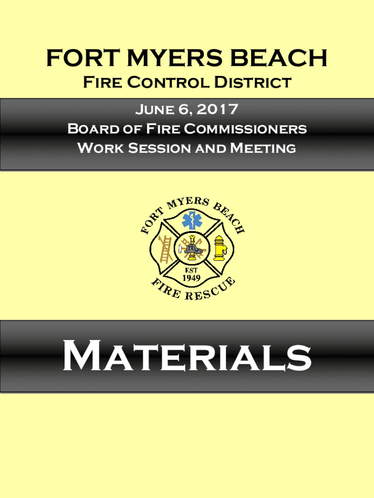 FORT MYERS BEACH Fire Control District June 6, 2017, Board of Fire Commissioners Work Session and MeetingMaterialsFort Myers Beach Fire Control District BOARD OF FIRE COMMISSIONERS WORK SESSION &