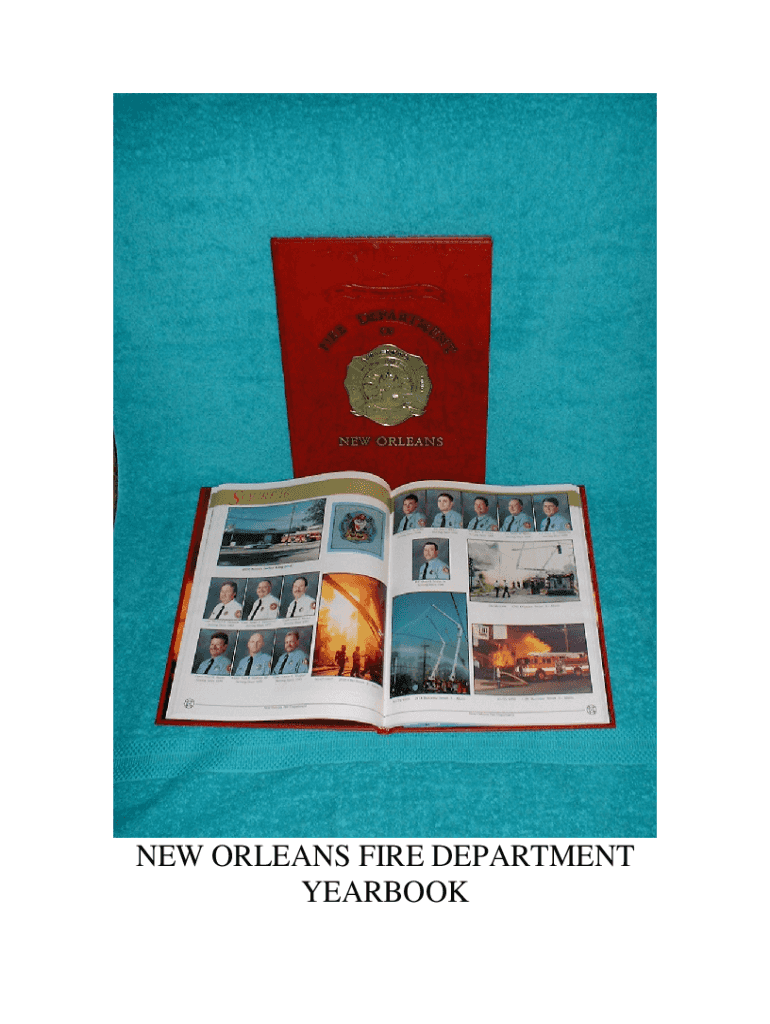 NEW ORLEANS FIRE DEPARTMENT YEARBOOK ORLEANS FIRE DEPARTMENT 125th SilverCentennial Yearbook ALL COLOR PAGES143 40th. St. New Orleans, La. 70124 (504) 8844908NAME: ___ COMPANY ASSIGNED:___ ADDRESS: