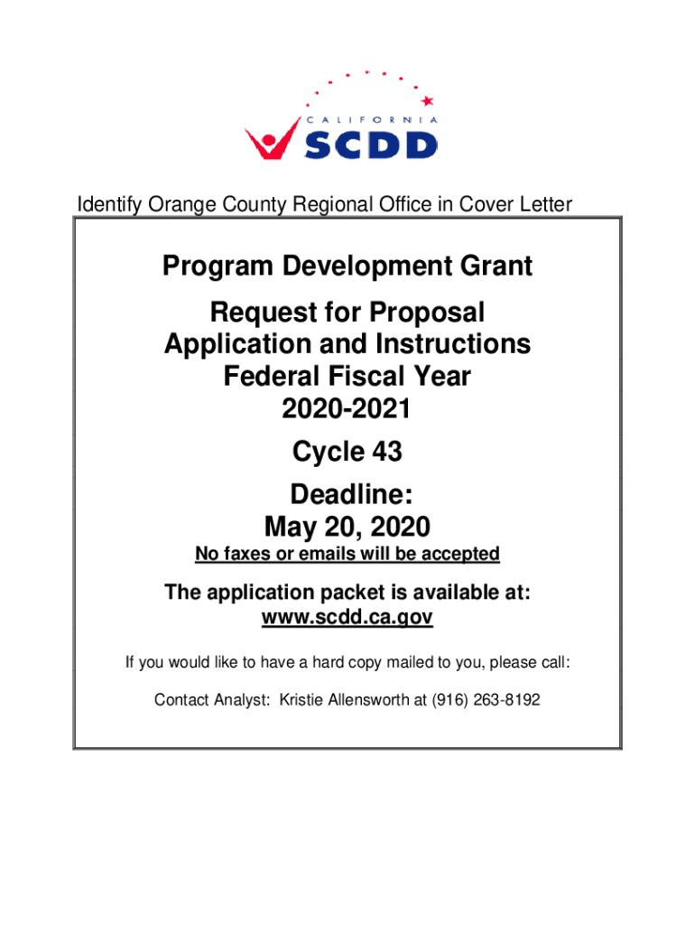Identify Orange County Regional Office in Cover LetterProgram Development Grant Request for Proposal Application and Instructions Federal Fiscal Year 20202021 Cycle 43 Deadline: May 20, 2020, No faxes