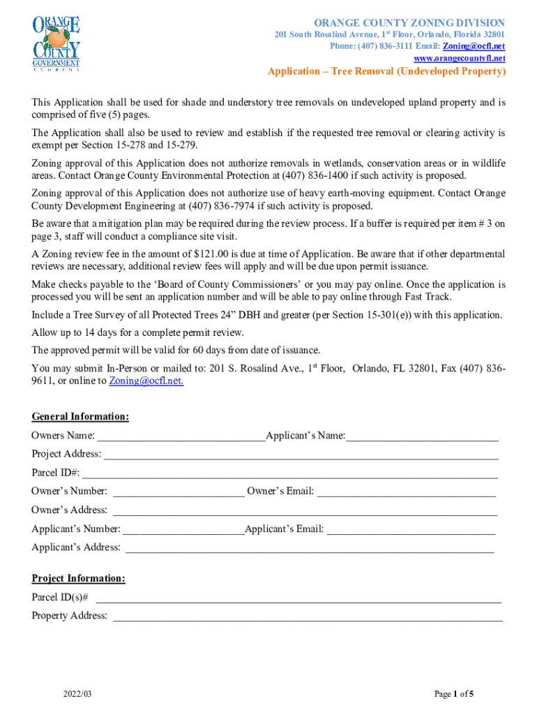ORANGE COUNTY ZONING DIVISION201 South Rosalind Avenue, 1st Floor, Orlando, Florida 32801 Phone: (407) 8363111 Email: Zoning×CFL.net www.orangecountyfl.netApplication Tree Removal (Undeveloped Property)This