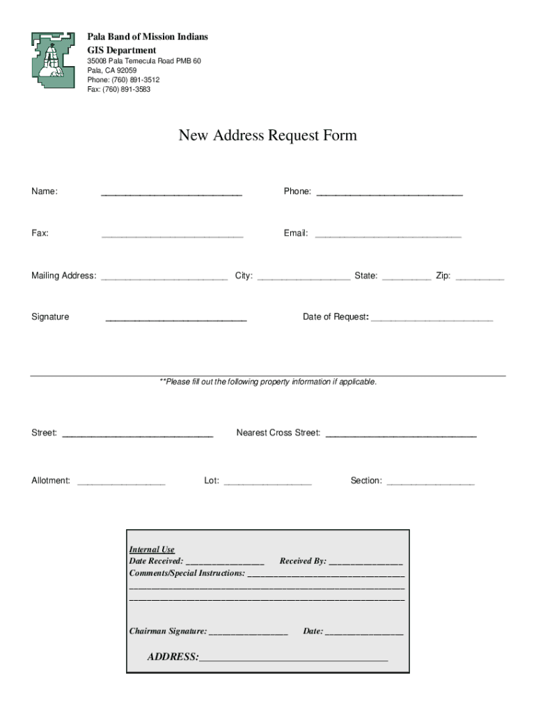 Get the free New Address Request Form - Pala Band of Mission Indians