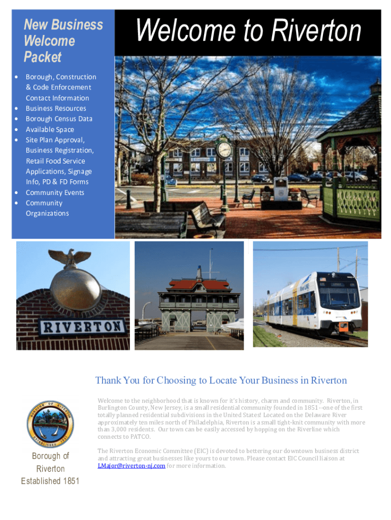 New Business Welcome Packet SALE Welcome to Riverton Foxborough, Construction & Code Enforcement Contact Information Business Resources Borough Census Data Available Space Site Plan Approval, Business