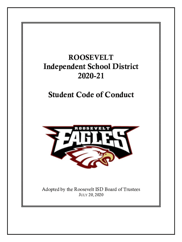 ROOSEVELTIndependent School District 202021 Student Code of ConductAdopted by the Roosevelt ISD Board of Trustees JULY 20, 2020Table of Contents ___ Acknowledgement ..............................................................................