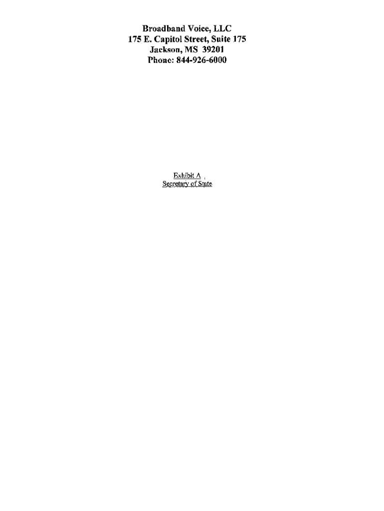 Broadband Voice, LLC 175 E. Capitol Street, Suite 175 Jackson, Elvis 39201 Phones: 8449266000ExhibitA. Secretary of State1043604.06 Alison Undergo Grimes Kentucky Secretary of State Received and Filed: