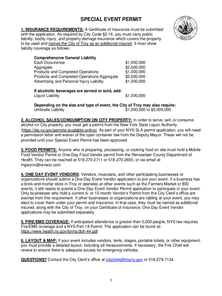 SPECIAL EVENT PERMIT 1. INSURANCE REQUIREMENTS: A Certificate of Insurance must be submitted with the application. As required by City Code 214, you must carry public liability, bodily injury, and