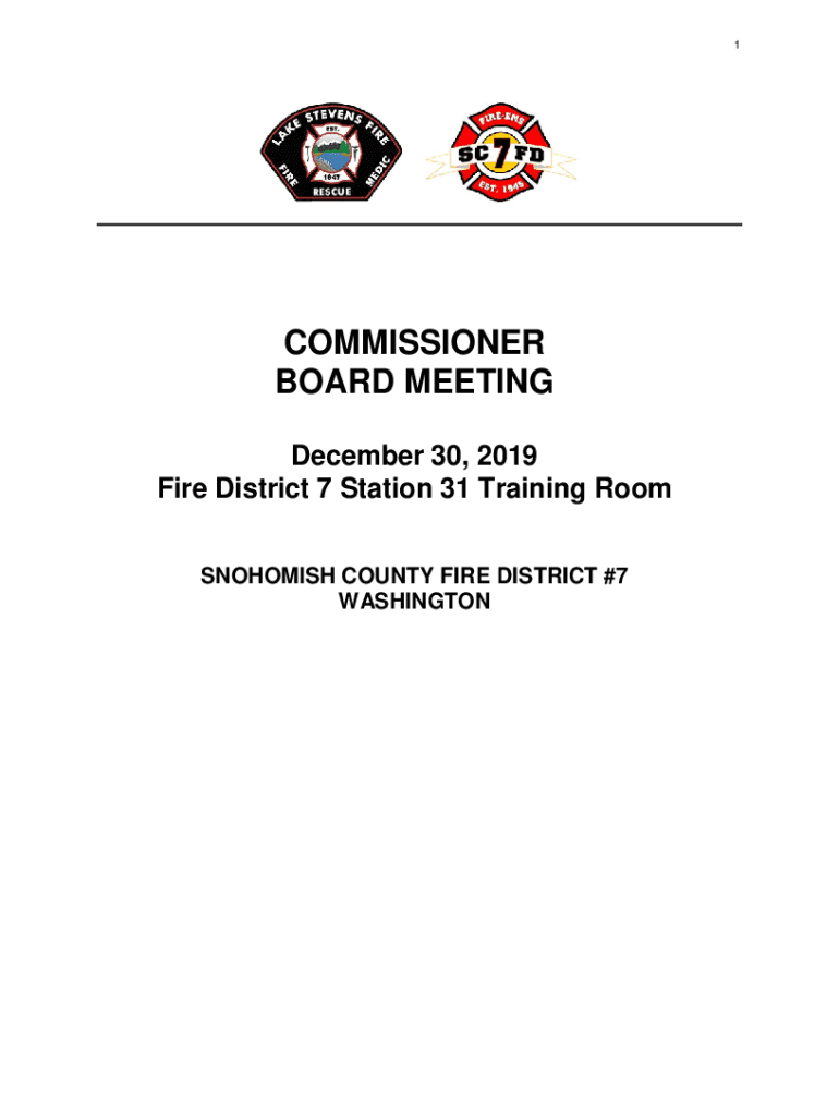 1COMMISSIONER BOARD MEETING December 30, 2019, Fire District 7 Station 31 Training Room SNOHOMISH COUNTY FIRE DISTRICT #7 WASHINGTON2AGENDA3BOARD OF FIRE COMMISSIONERS JOINT MEETING AGENDA LAKE STEVENS