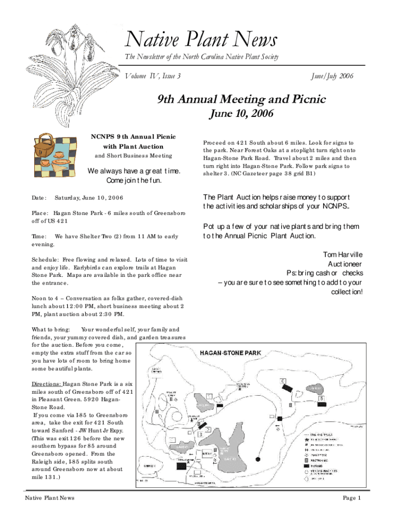 Native Plant Noose Newsletter of the North Carolina Native Plant Society Volume IV, Issue 3June/July 20069th Annual Meeting and Picnic June 10, 2006NCNPS 9th Annual Picnic with Plant Auction and Short