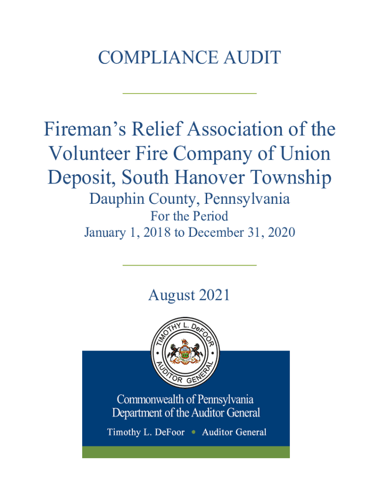 COMPLIANCE AUDIT___Fireman Relief Association of the Volunteer Fire Company of Union Deposit, South Hanover Township Dauphin County, Pennsylvania the Period January 1, 2018, to December 31, 2020___
