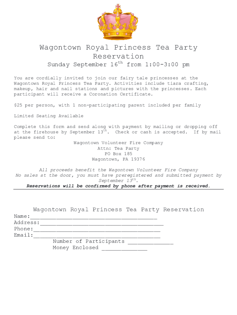 Get the free wagontownfire.comappspublicWagontown hosts Royal Princess Tea Party on Sunday