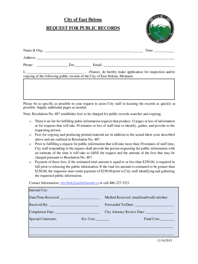 Get the free City of East Helena REQUEST FOR PUBLIC RECORDS