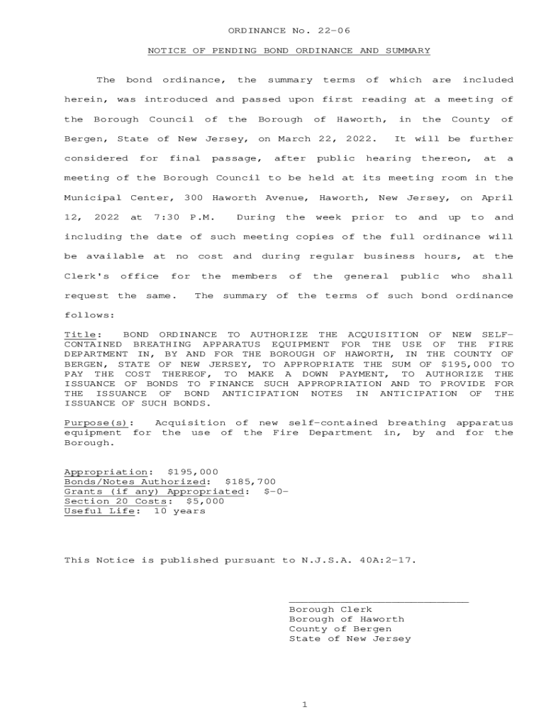 ORDINANCE No. 2206 NOTICE OF PENDING BOND ORDINANCE AND SUMMARYThebondordinance, thesummarytermsofwhichareincludedherein, was introduced and passed upon first reading at a meeting of the Borough Council