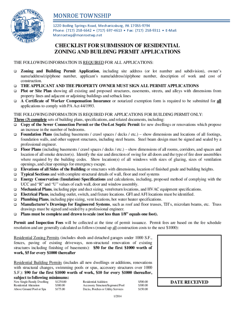 MONROE TOWNSHIP1220 Boiling Springs Road, Mechanicsburg, PA 170559794 Phone: (717) 2586642 (717) 6974613 Fax: (717) 2589311 Email: Monroe twp×Monroe.checklist FOR SUBMISSION OF RESIDENTIAL ZONING