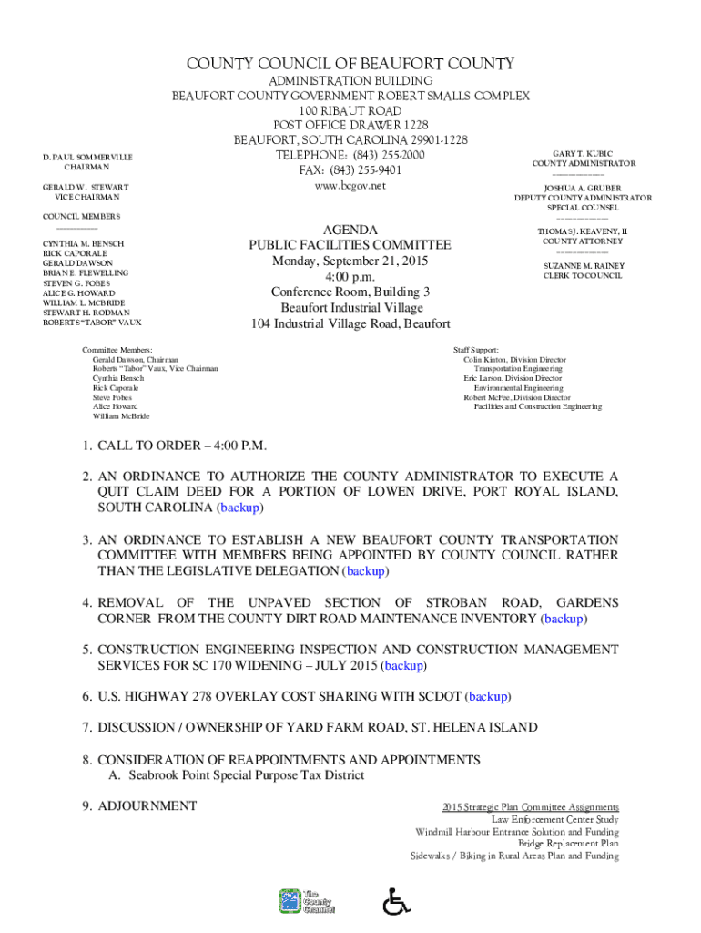 COUNTY COUNCIL OF BEAUFORT COUNTY. PAUL SOMERVILLE CHAIRMAN GERALD W. STEWART VICE CHAIRMANADMINISTRATION BUILDING BEAUFORT COUNTY GOVERNMENT ROBERT SMALLS COMPLEX 100 RIB AUT ROAD POST OFFICE DRAWER