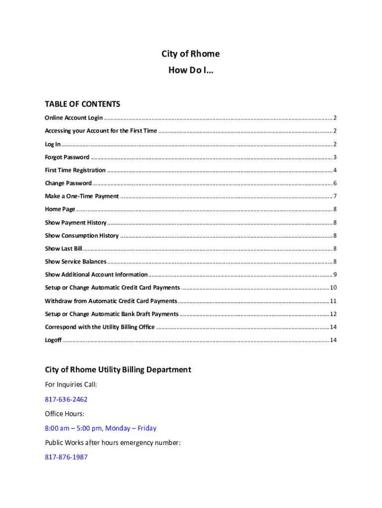 City of Home How Do I TABLE OF CONTENTS Online Account Login ...........................................................................................................................................