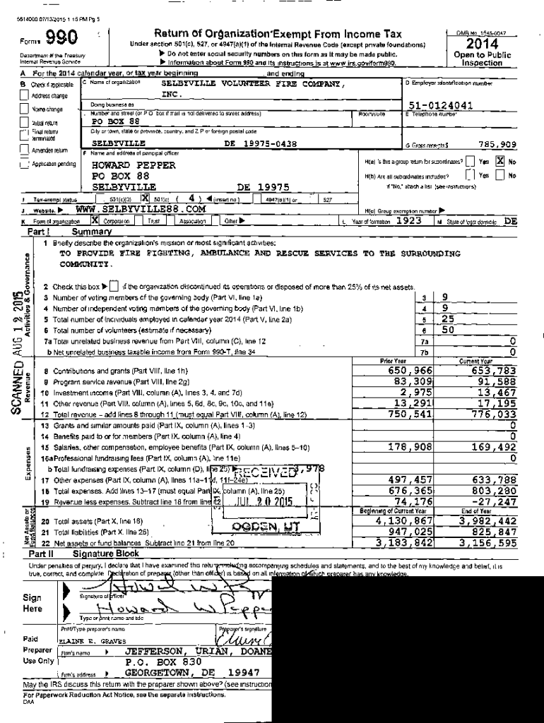 5614000 07/13/2015 1 15 PM Pg 5Forms 990 Department of the Treasury Internal Revenue ServiceReturn of Organization `Exempt From Income Tax OMB No 15450047Under section 501(c), 527, or 4947(a)(1) of