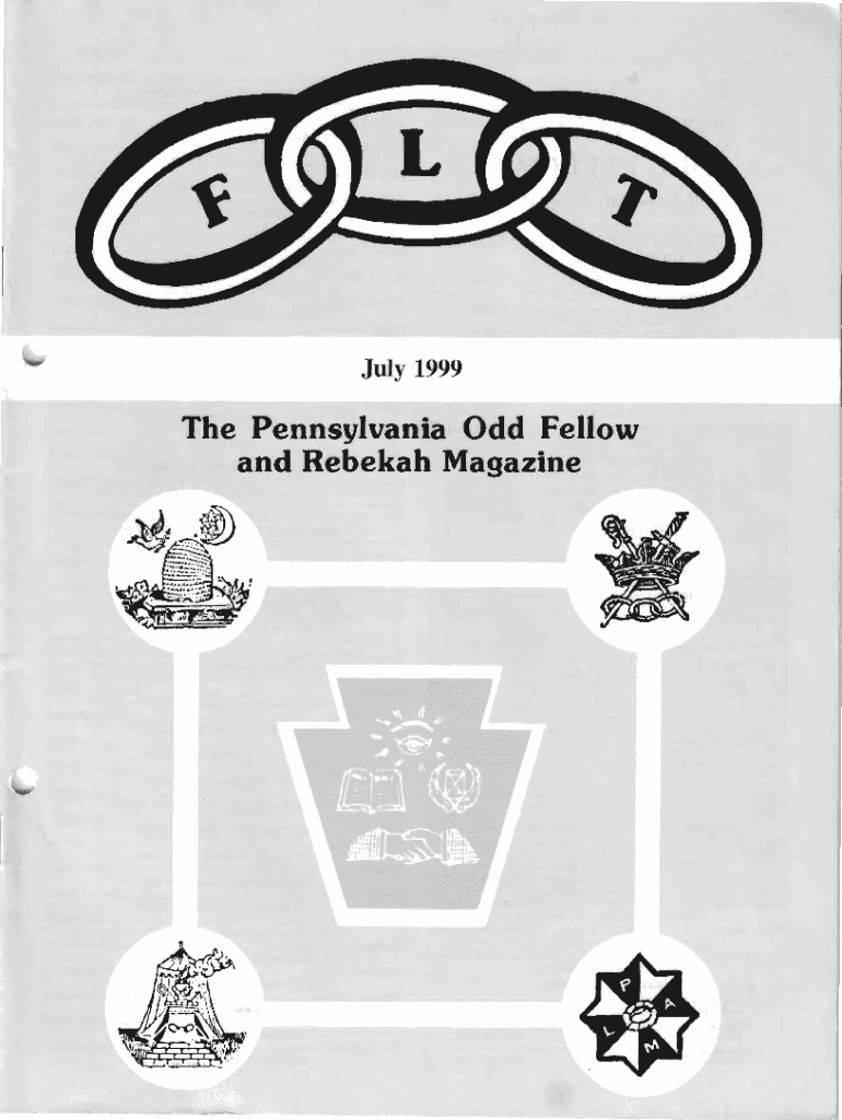 July 1999The Pennsylvania Odd Fellow and Rebekah MagazineTHEPENNSYLVANIA ODD FELLOWThePENNSYLVANIAODD FELLOWMAN LODGE OFACERSand Rebekah Magazine MEMBER OF The Independent ORDER OF ODD FELLOWS Jjntenllliinnni
