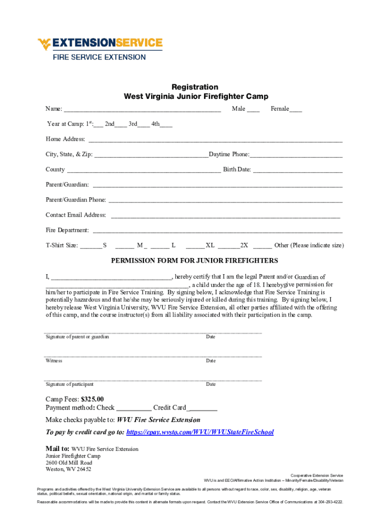 Get the free www.wvsfa.orgjunior-firefighter-camp-2Junior Firefighter Camp - West Virginia State ...