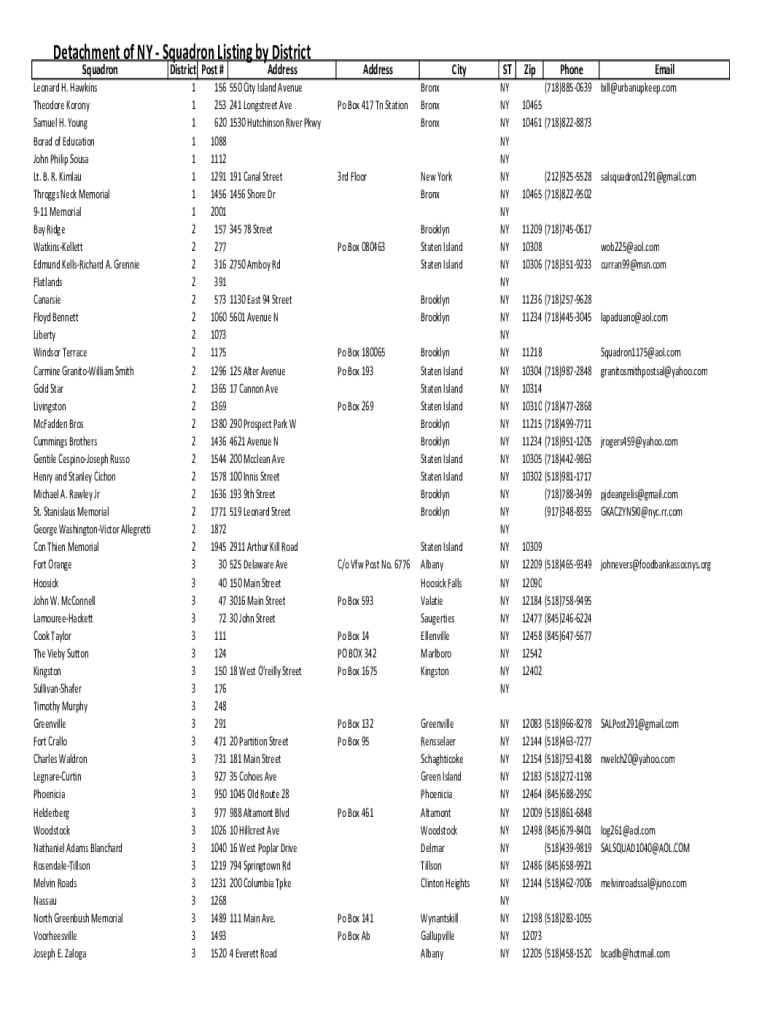 Detachment of NY Squadron Listing by District Squadron Leonard H. Hawkins Theodore Colony Samuel H. Young Board of Education John Philip Sousa Lt. B. R. Killed Throngs Neck Memorial 911 Memorial Bay