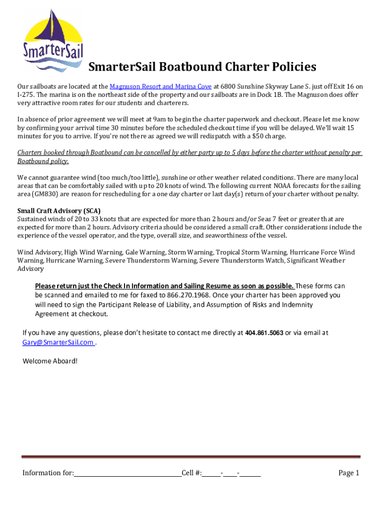 SSmarterSail Boat bound Charter Policies sailboats are located at the Manson Resort and Marina Cove at 6800 Sunshine Skyway Lane S. just off Exit 16 on I275. The marina is on the northeast side of
