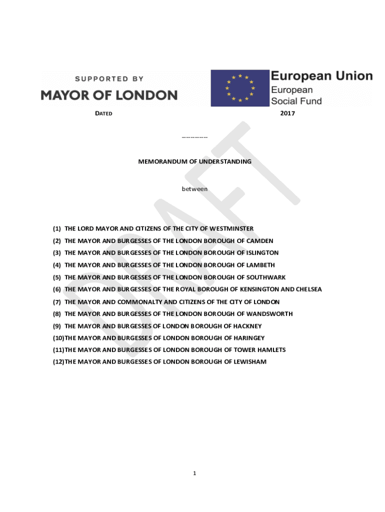 DATED2017MEMORANDUM OF UNDERSTANDING between(1) THE LORD MAYOR AND CITIZENS OF THE CITY OF WESTMINSTER (2) THE MAYOR AND BURGESSES OF THE LONDON BOROUGH OF CAMDEN (3) THE MAYOR AND BURGESSES OF THE