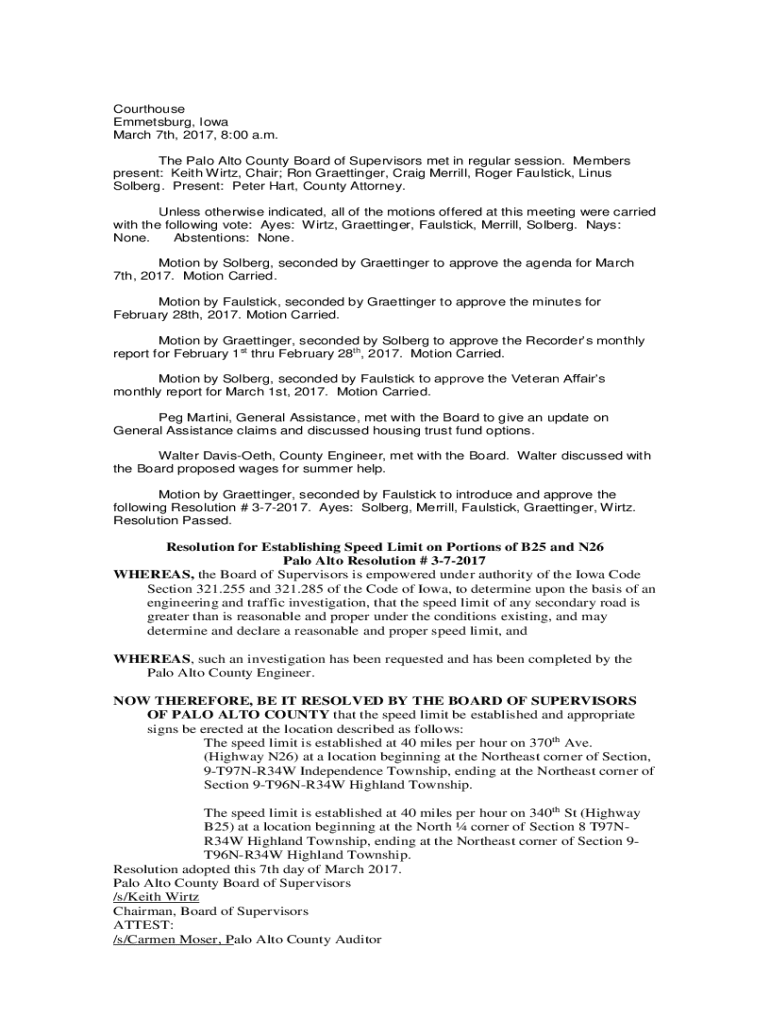 Get the free Resolution for Establishing Speed Limit on Portions of B25 and N26 ...