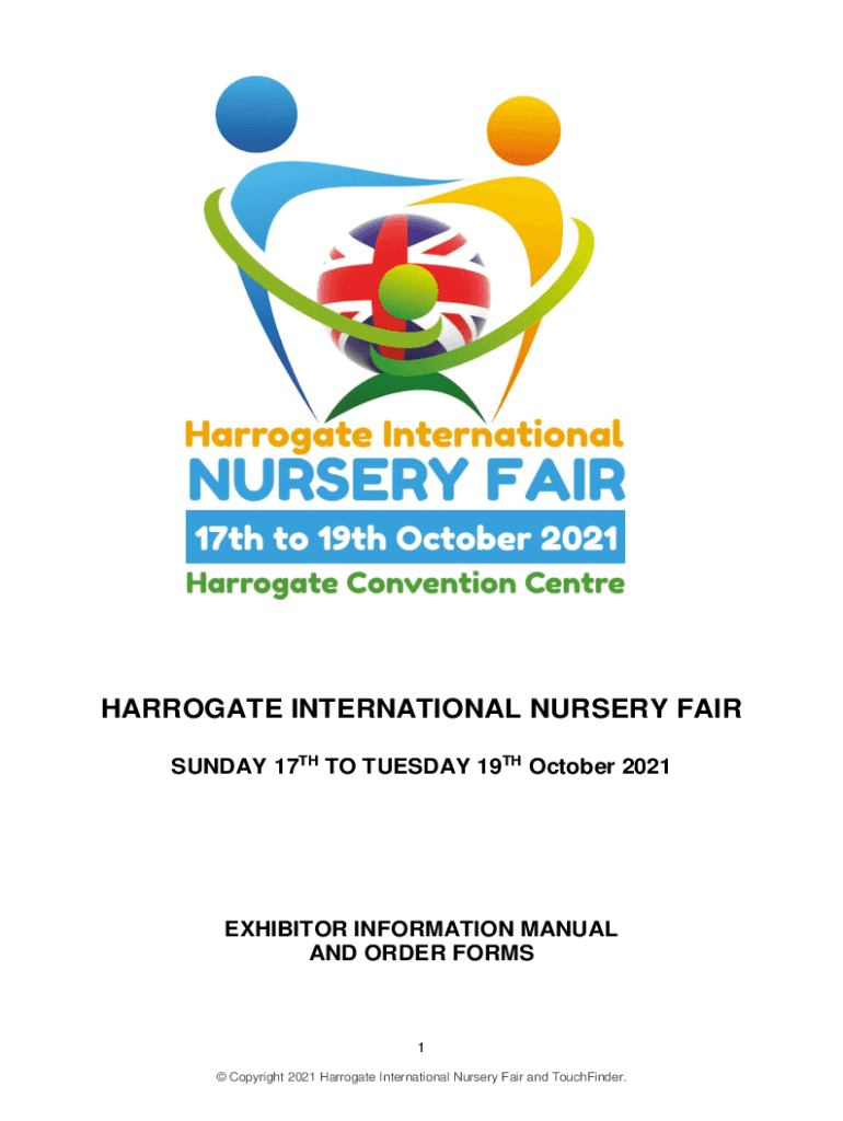 ARROGATE INTERNATIONAL NURSERY FAIR SUNDAY 17TH TO TUESDAY 19TH October 2021EXHIBITOR INFORMATION MANUAL AND ORDER FORMS1 Copyright 2021 Arrogate International Nursery Fair and Touchier. IMPORTANT!