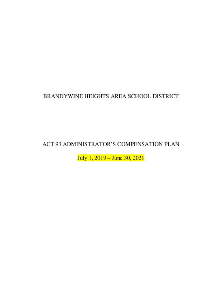 BRANDYWINE HEIGHTS AREA SCHOOL DISTRICT ACT 93 ADMINISTRATORS COMPENSATION PLAN July 1, 2019, June 30, 2021PURPOSE: This Act 93 Administrators Compensation Plan has been prepared for the guidance