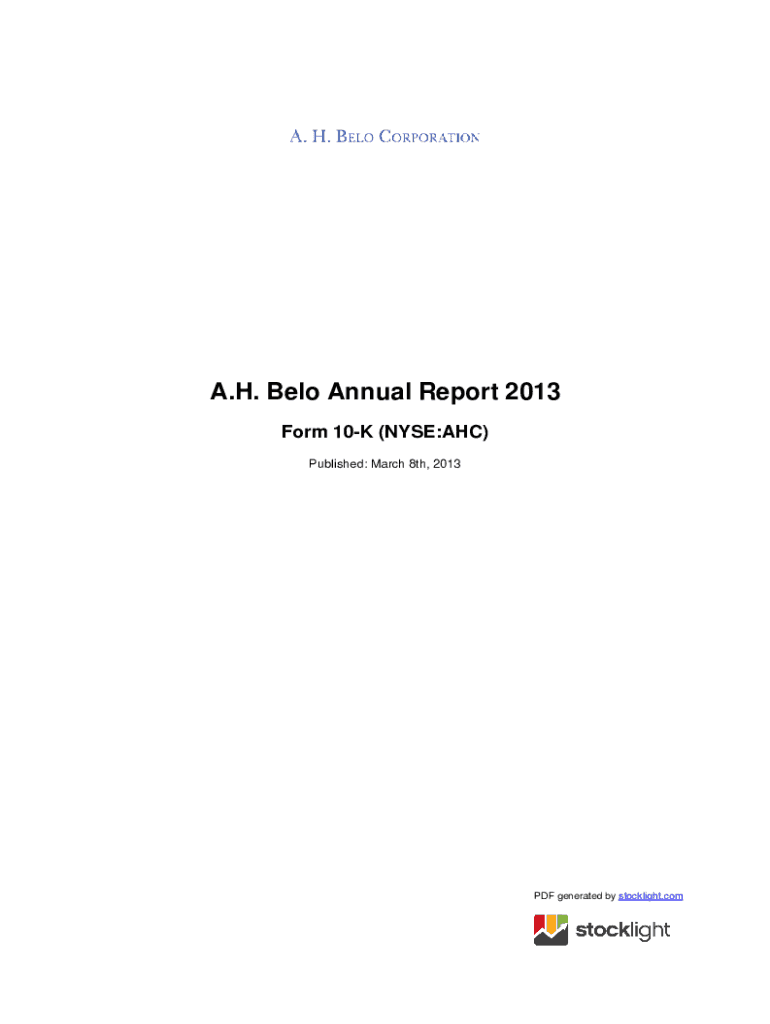 Get the free Newspaper Publisher A. H. Belo Corporation Will File ...