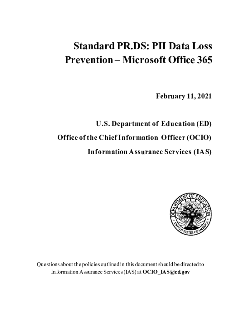 Standard PR.DS: PIN Data Loss Prevention Microsoft Office 365 February 11, 2021, U.S. Department of Education (ED) Office of the Chief Information Officer (OHIO) Information Assurance Services (IAS)Questions