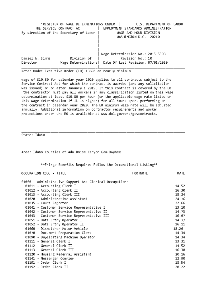 \” REGISTER OF WAGE DETERMINATIONS UNDER | U.S. DEPARTMENT OF LABOR THE SERVICE CONTRACT ACT | EMPLOYMENT STANDARDS ADMINISTRATION By direction of the Secretary of Labor | WAGE AND HOUR DIVISION