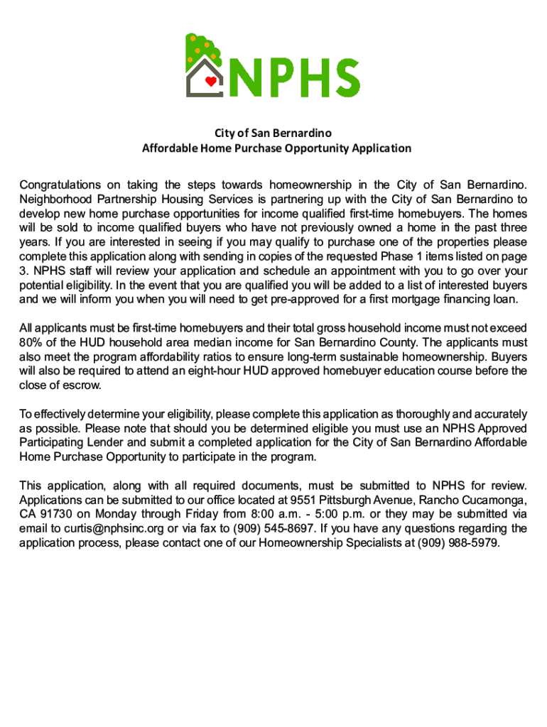 Get the free nphsinc.orgwp-contentuploadsCity of San Bernardino Affordable Home Purchase Opportun...