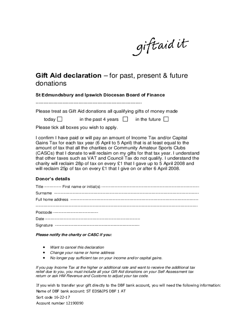 Get the free Diocese of St Edmundsbury and IpswichGift Aid and the ...