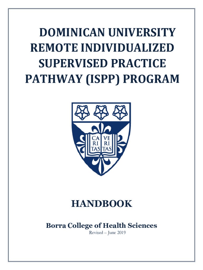 DOMINICAN UNIVERSITY REMOTE INDIVIDUALIZED SUPERVISED PRACTICE PATHWAY (ISP) PROGRAMHANDBOOK Berra College of Health Sciences Revised June 2019Table of Contents Welcome letter ..................................................................................................................................3