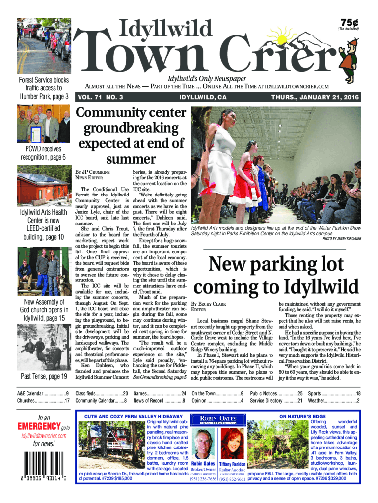 IdyllwildForest Service blocks traffic access to Humber Park, page 3PCWD receives recognition, page 6Town Crew Idyll wilds Only Newspaper ALMOST ALL THE NEWS PART OF THE TIME ... ONLINE ALL THE TIME