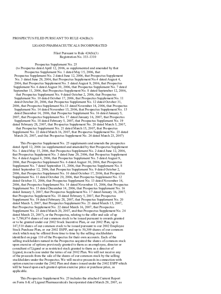 PROSPECTUS FILED PURSUANT TO RULE 424(B)(3) LIGAND PHARMACEUTICALS INCORPORATED Filed Pursuant to Rule 424(b)(3) Registration No. 3331310 Prospectus Supplement No. 25 (to Prospectus dated April 12,