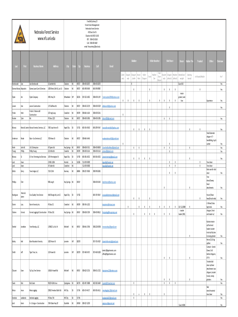 Fred McCartney CF Forest Fuels Management Nebraska Forest Service 430 East 2nd St Charon NE 693372433 Off. 3084328158 Cells. 3084305867 email fmccartney2×UNL. Nebraska Forest Service www.nfs.unl.eduSkidder: